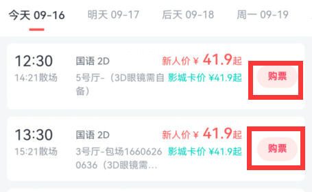 5、随后挑选好时间、场次并点击“ 购 票 ”