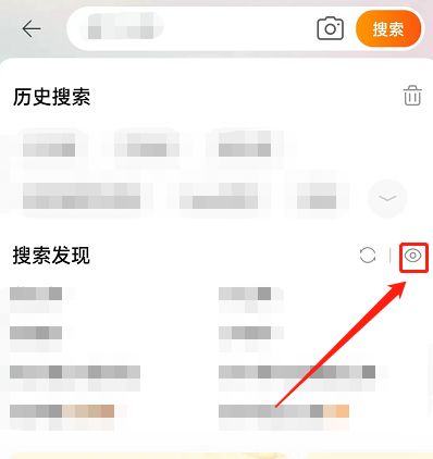 2、找到搜索发现,点击右侧眼睛图标。
