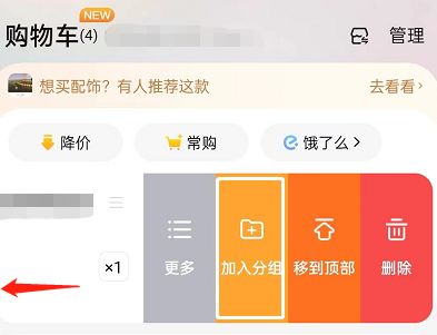1、将自己需要加入分组的宝贝向左滑动,点击加入分组。