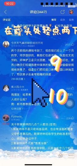 6、然后来到了评论界面, 从第一条评论往下数,然后在九和十评论中间敲击两下