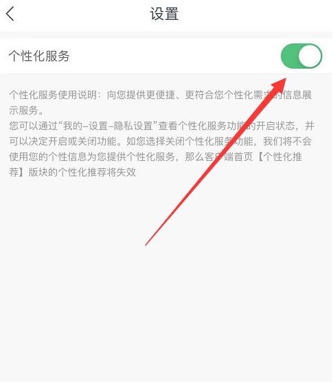 5、最后,我们将“个性化服务”栏后面的开关关闭就可以了。