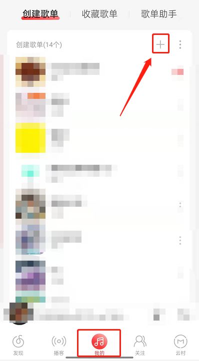 1、打开网易云音乐,点击进入我的,找到创建歌单,点击加号。