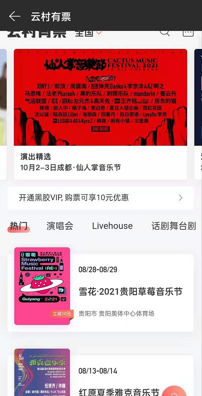 网易云 音乐 既可以观看演出,还可以在这里购买线下演出的票务。那么具体的购买地址在哪里呢?喜欢看演出的小伙伴就来看看小编带来的介绍吧,希望看完之后可以对你有所帮助。