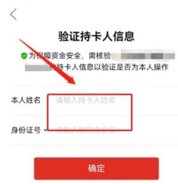 需要在验证持卡人信息页面输入本人姓名和身份证号。
