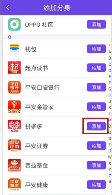 2、点击添加拼多多分身。