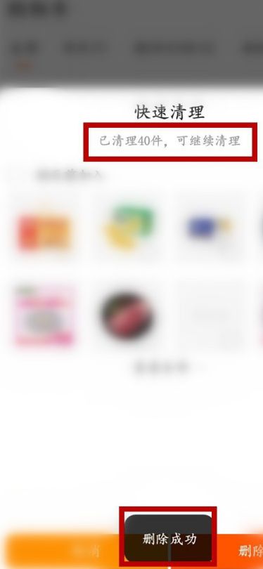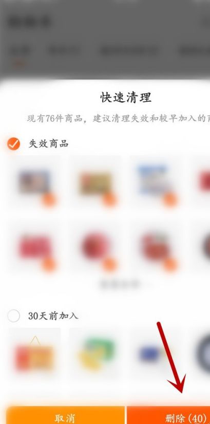 5、系统自动勾选失效商品,点击右下角的【删除】。