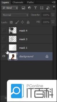 步骤7、 通过按两次 Control-J 复制背景层。转到上方的副本,按住 Control ,然后单击“遮罩 1 ”的缩略图以将其选中。使用 Control-Shift-I 反转选择,并添加一个 Layer Mask 。