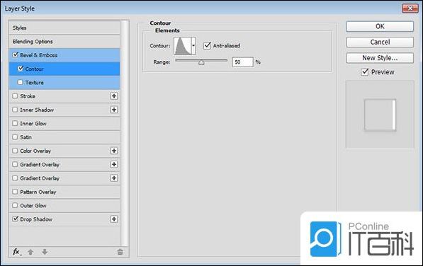 第1步、 使用以下设置添加斜面和浮雕:
