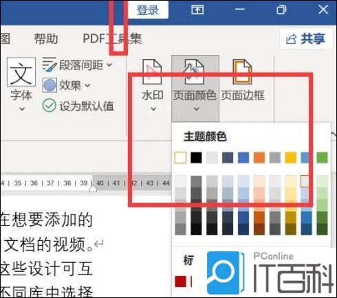 单击功能区“设计”选项卡,点击右上角“页面颜色”,下拉在主题颜色里选择“白色”。