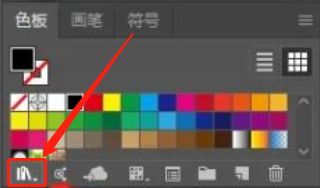 3.或者直接调出右边的色板面板,点击左下角的“色板库”图标,选择“配色本”。