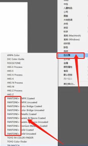 4.在右侧展开的色卡中,选择带有“PANTONE”字样的色卡。