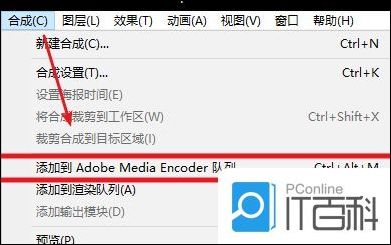 2.依次点击“合成”-“添加到Adobe Media Encoder队列”。
