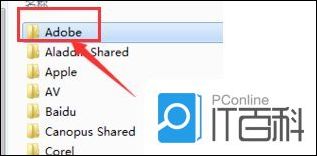 3. 在列表中找到Adobe文件夹并打开。