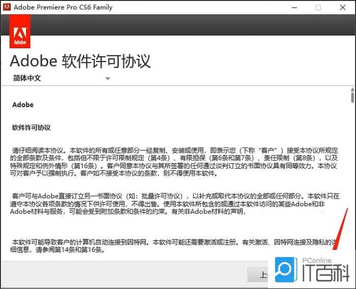 7、弹出Adobe软件许可协议窗口,点击【接受】的按钮。