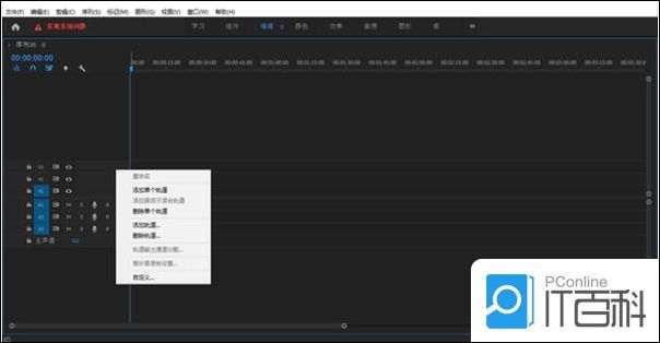 序列创建后,音频和视频轨道的数量通常保持默认。当然,创建新序列时也可以设置轨道数。右键点击轨道头区域,可以选择增加打开序列中删除的轨道数,以满足实际操作要求。