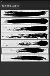 单击“画笔预设”窗口右上角的菜单按钮,然后从列表中依次选择“画笔库-矢量包-打开退化画笔矢量包”选项以打开笔触样式选择窗口。