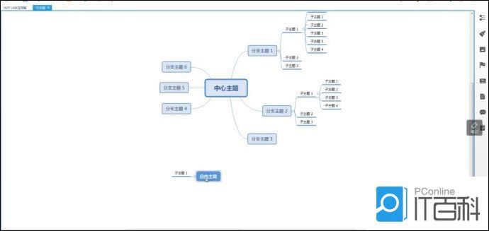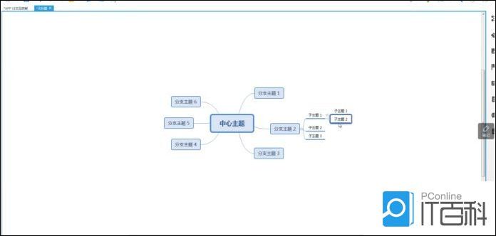 5,分支主题添加完成后,要去添加子主题,这时选中我们的分支主题,按键盘上的Tab键,就可以添加子主题。如下图所示: