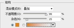 勾选【颜色叠加】效果选项,混合模式为黄色加深。