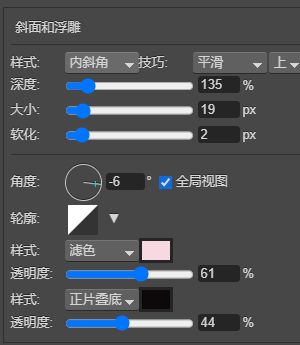 选取「斜角和浮雕」选项,选取「内斜角」样式,然后选取「加/减速」方法,根据效果调整参数。添加倾斜轮廓,选择高光模式为“滤镜”,阴影模式为“正”,根据效果调整参数。