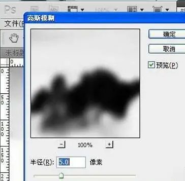 4.在菜单栏中点击滤镜,在弹出的下拉框中点击模糊,然后在二级菜单中点击高斯模糊。在弹出的高斯模糊窗口中,将半径设置为5像素,然后单击确定。