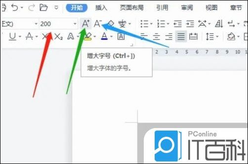 3、在字号方框中直接输入字号如200,确定,或点击增大字号,减少字号进行操作。