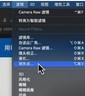 3.单击[滤镜]菜单选项,选择打开列表中的[消失点]工具。此时,校正锚点将显示在透视场景中。
