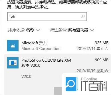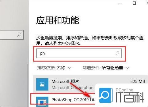 4、然后在搜索框搜索:ph,就会搜索出Photoshop的应用程序