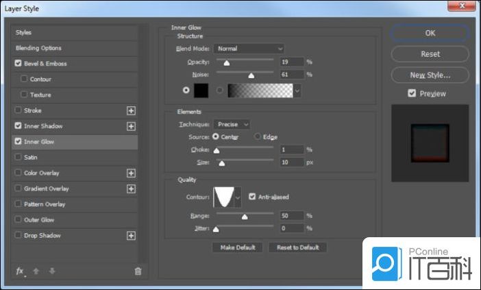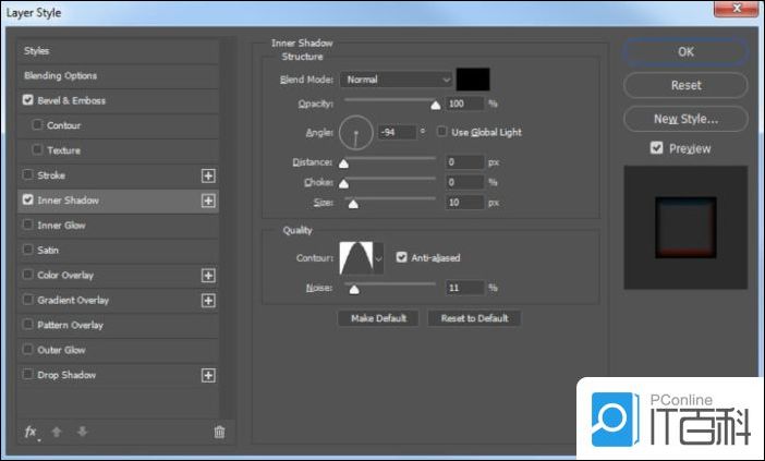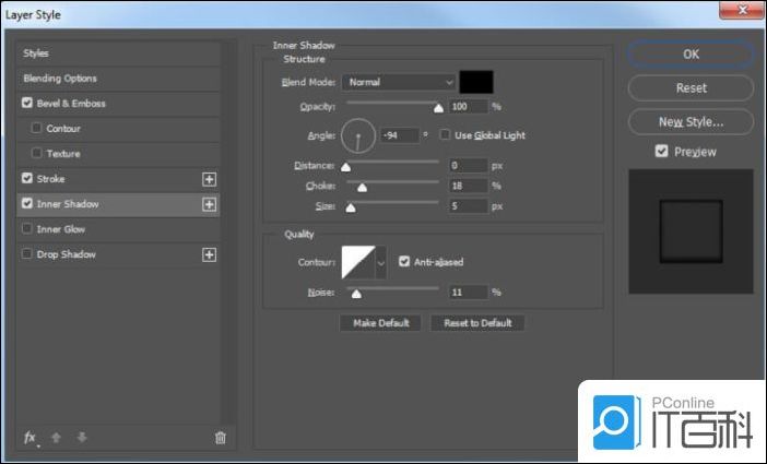 第3步、 使用以下设置将 “内部阴影”添加到涂鸦文字效果:
