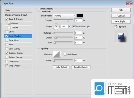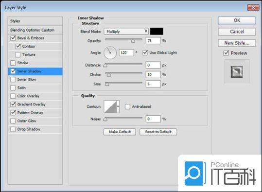 第3步、 使用以下设置添加内部阴影: