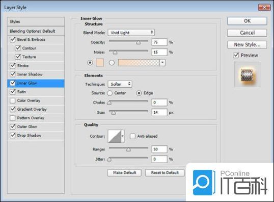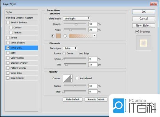 第6步、 使用以下设置添加内发光: