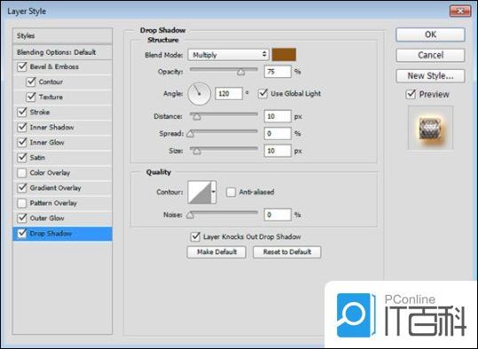双击背景复制图层以应用以下图层样式: