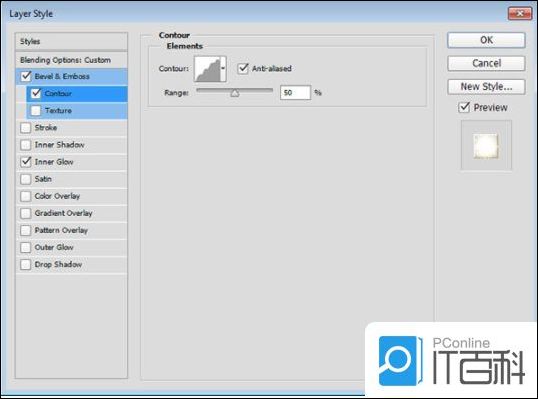 第1步、 使用以下设置添加斜面和浮雕: