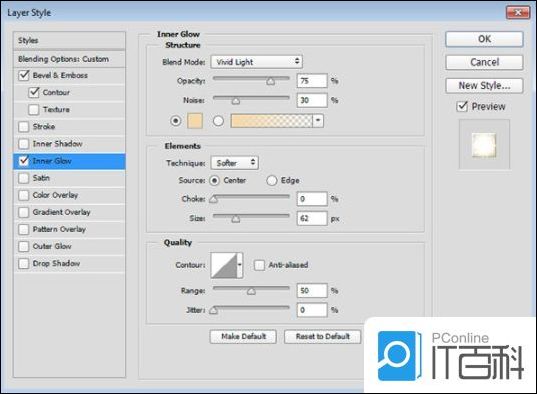 第3步、 使用以下设置添加内发光:
