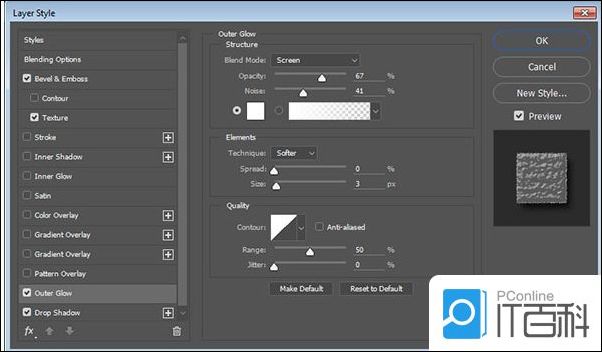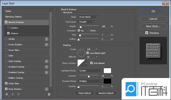 步骤 1、 使用以下设置添加斜面和浮雕: