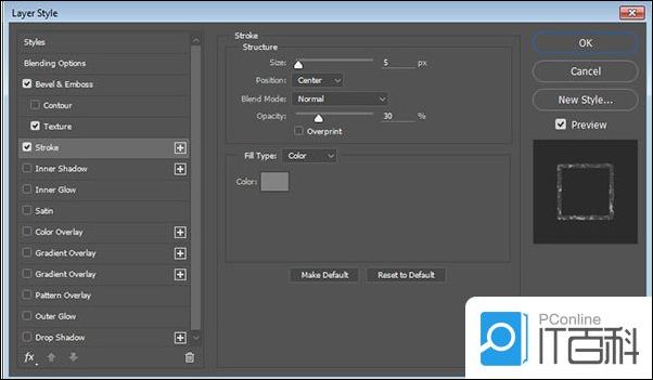 第5步、 设置样式后,将其图层的不透明度值降低到 35 %,并将其填充值降低到 10 %.