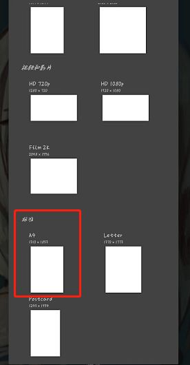 2.这里我们点击“模板”按钮,进入 画师 软件的画布模板。我们可以通过在底部向下滑动来找到“A4”的大小。