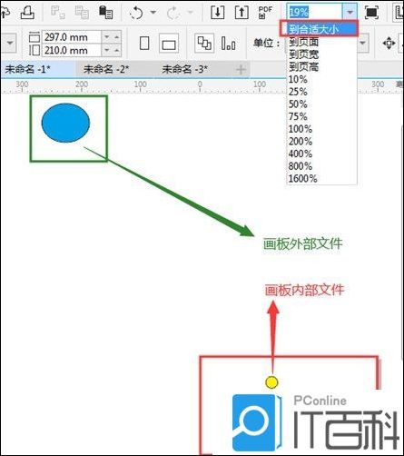 1、到合适大小,相当于快捷键F4和双击工具栏放大镜的缩放结果,可以看到画板区内外所有的内容