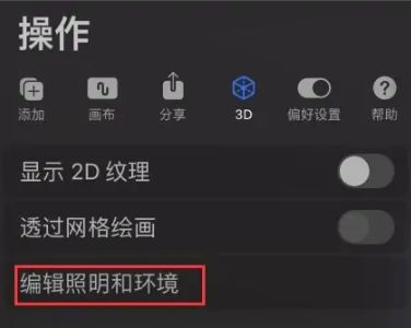 3.在“3D”页面选择“编辑灯光和环境”选项,即可打开“灯光工作室”界面。
