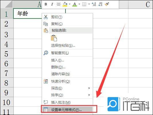 2、选中文字,单击右键“设置单元格格式”选项,如下图所示。