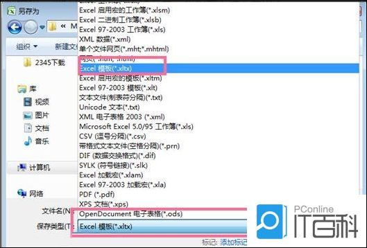 3、此时页面会弹出一个另存为的设置页面,在另存为设置页面里设置好保存路径和模板的名称,然后点击下方的保存类型按钮,此时会弹出一个下拉菜单,在下拉菜单里点击选择Excel模板.XLTX,最后点击【保存】按钮。