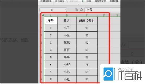1:打开需要自动排序的表格,以下以成绩表为例。(如下图所示)。