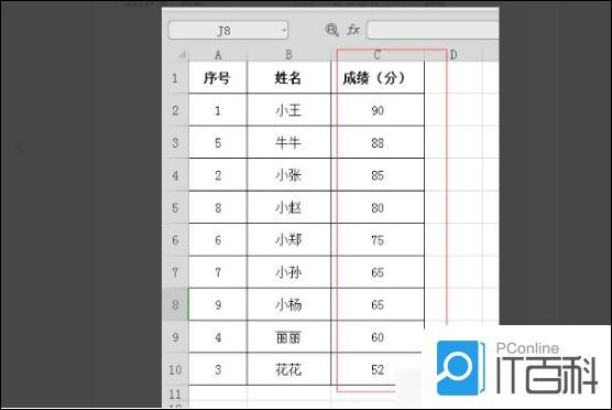 6: 点击确定,就可以看到成绩这一列的数据已经按照降序的方式动排序完成了,(如图所示)。