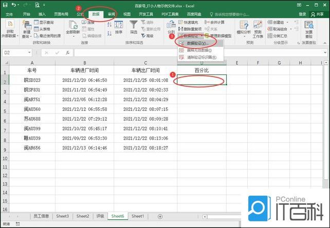 2、选中单元格,依次点击【数据】-【数据验证】-【数据验证】;