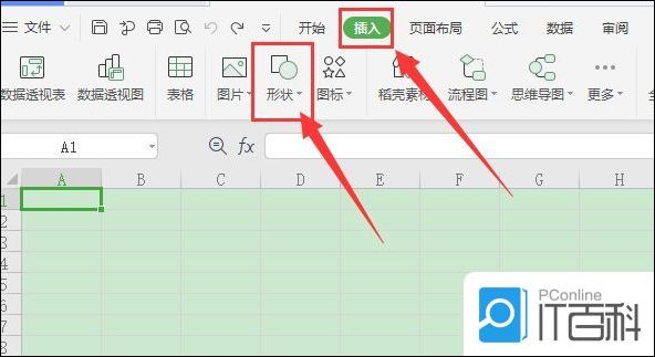 2、随意选择一个单元格,在顶部 菜单 栏找到“插入”的栏目