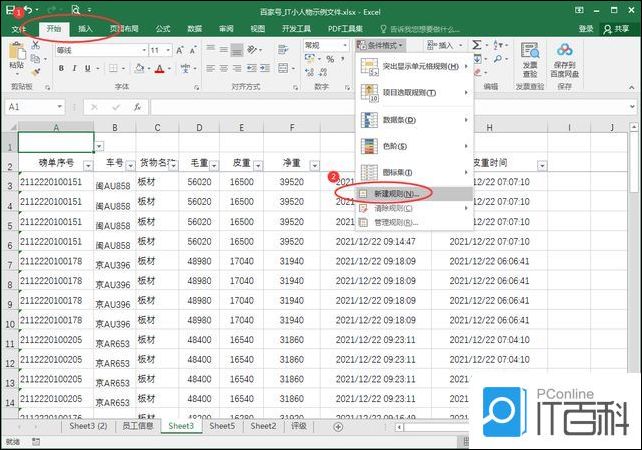 4、选中表格数据后,再点击【开始】-【条件格式】-【新建规则】;