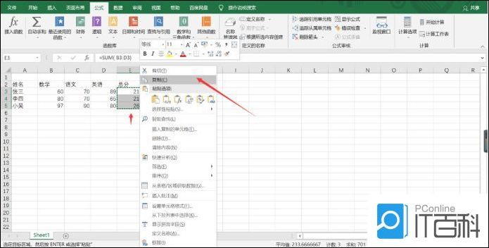 2.在被选中的状态下上面会显示公式,接着大家再选中公式计算出的结果后,鼠标右击选择复制或使用快捷键Ctrl+C进行复制数据,如图所示。