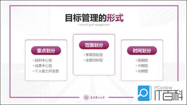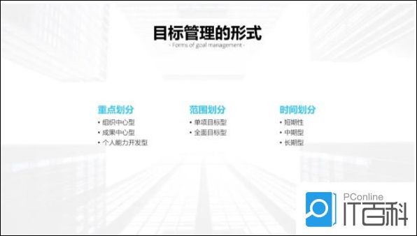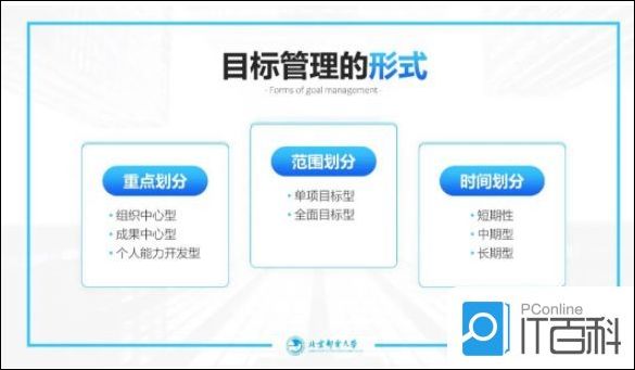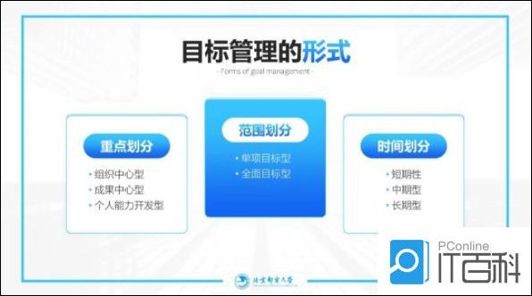 看了稿子,可以知道目标管理的形式有三种划分方式,这里需要划分三个同级的内容块。