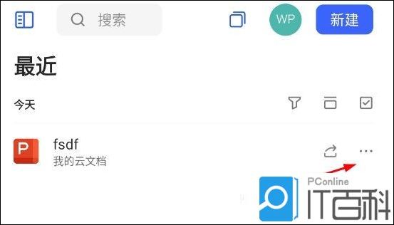 3、接着我们回到WPS手机版的主页面,在文件列表中找到刚才保存的PPT文件,点击文件旁边的三个点菜单。