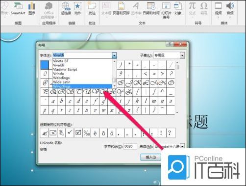 然后点击wingdings按钮,进入wingdings页面。