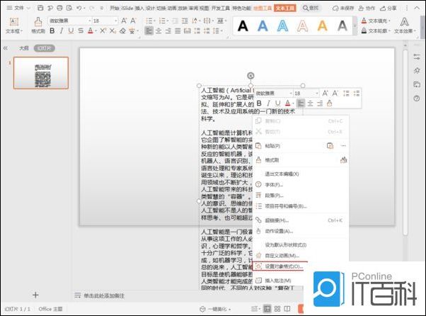 右键点击文本框,选择设置对象格式。